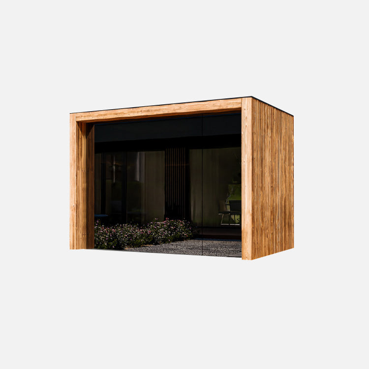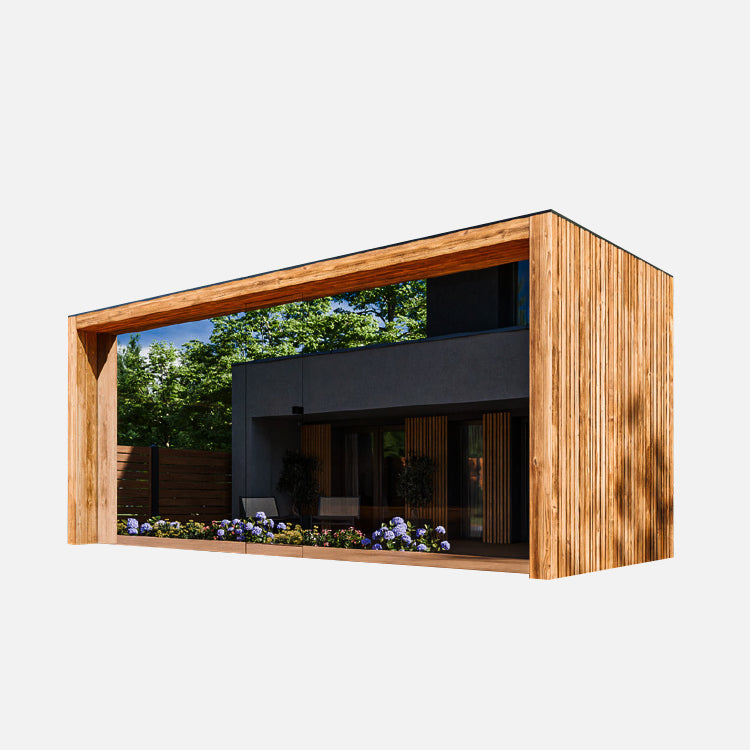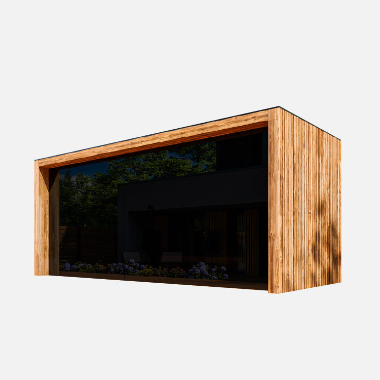 Die kleinste Variante: kompakte Garten-Sauna mit massiver Fichtenkonstruktion, nachhaltiger Dämmung und edler Thermo-Espe. Ideal für kleine Gärten mit hohem Komfortanspruch.